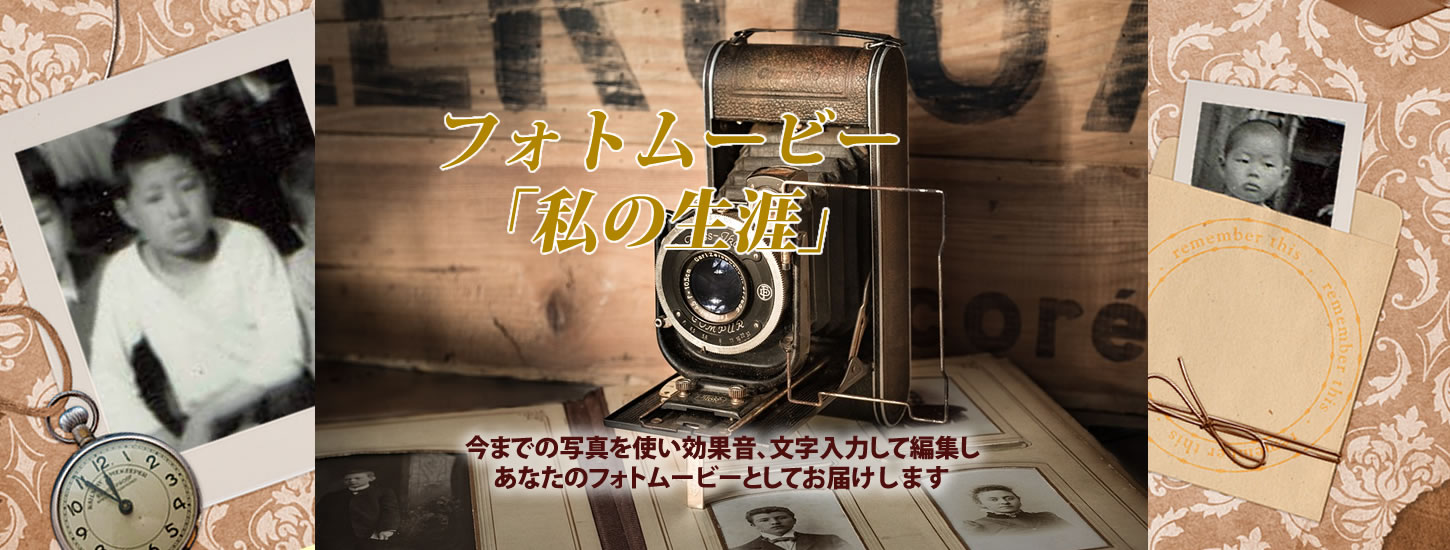 あなたの今までの生涯の写真20枚迄を活用して効果音楽と文字入力にて編集してあなたの今までの足跡と将来に向かっての展望を1つのフォトムービーの作品に仕上げDVDにてお届けします。